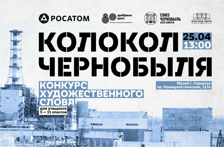 Музей города приглашает обучающихся 5–11 классов образовательных учреждений ЗАТО Северск, Северского кадетского корпуса и Северского промышленного колледжа стать частью особого события — конкурса художественного слова «Колокол Чернобыля». Конкурс пройдёт 25 апреля в 13.00 в музее, на выставке «Тридцать километров тишины.