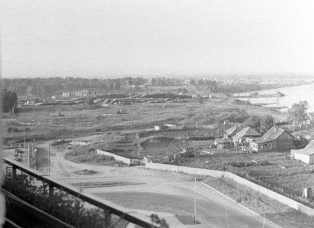 Улица Ленина, справа вдоль реки стояла деревня "Белобородово". Начало строительства новой дороги. Сейчас это место не узнать-новая дорога-новые дома.