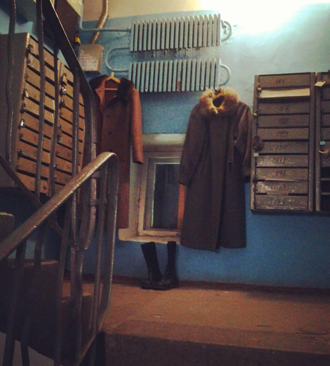 Коммунальный подъезд всея Россия. Заскочила и ошалела. Теперь ночь не буду спать, гадая живет ли кто у нас или это один из вариантов обхождения без балкона. И о необычайно высоком уровне доверия соседям. Всё же где-то оно сохранилось, радует)
