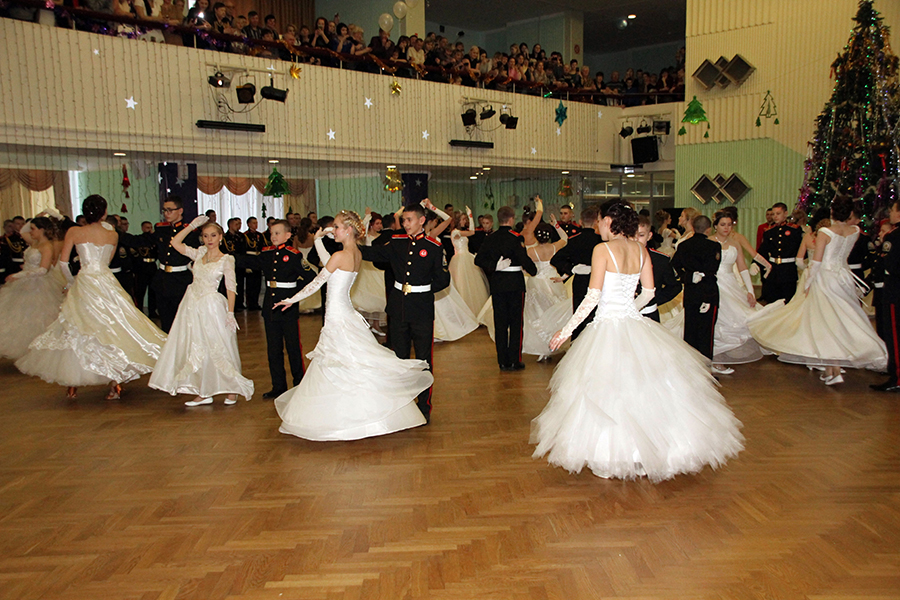 По традиции бал открыл великолепный танец XVIII столетия полонез, танец-шествие, во время которого подтянутые и галантные кавалеры в парадной форме, грациозные барышни в бальных платьях продемонстрировали свою хореографическую подготовку, чувство ритма, осанку, пластику и умение слышать и чувствовать музыку. Один танец сменялся другим, кадеты и их прелестные партнерши уверенно скользили по паркету, исполняя традиционные бальные танцы: «Краковяк», «Падеграс», «Мазурка», «Менуэт», «Экосез», несколько видов вальса.