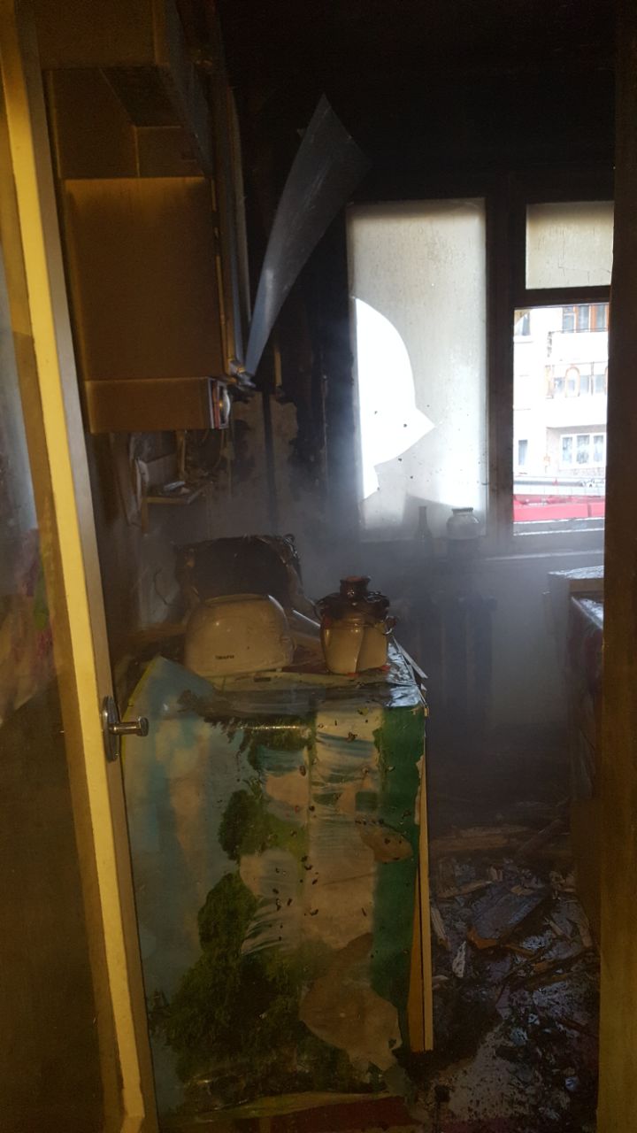 Было принято решение вскрыть квартиру, а также одновременно подать ствол в окно кухни. Когда пожарные начали вскрывать двери, вернулся хозяин квартиры и открыл ее ключом. Проникнув в помещение, пожарные продолжили разведку. Вся трехкомнатная квартира была задымлена, видимость отсутствовала. В одной из комнат газодымозащитниками была обнаружена лежащая в кровати маленькая девочка без сознания. Она была немедленно вынесена из помещения и передана в автомобиль скорой медицинской помощи. В кухне горел маленький телевизор, часть кухонной тумбы и некоторые из находящихся там вещей. Пожар был ликвидирован в 15:15. Площадь его составила 2 кв. метра.
