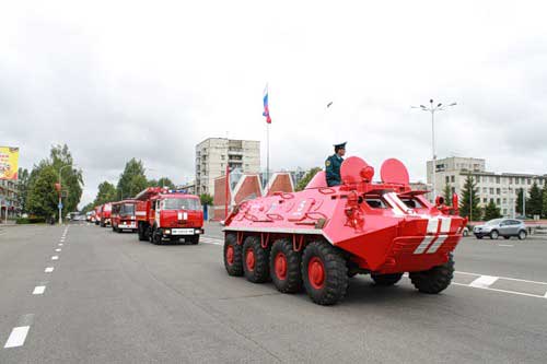 Колонна из 18 машин прошла через весь город. Здесь был представлен транспорт, оборудованный аппаратурой по контролю за радиационной обстановкой, коротковолновыми и УКВ-радиостанциями, спецтехника для тушения пожаров, в том числе в условиях радиационного воздействия, а также машины для спасения пострадавших при чрезвычайных ситуациях. Горожанам в день праздника показали технику, которую в обычной жизни на улице не встретишь.