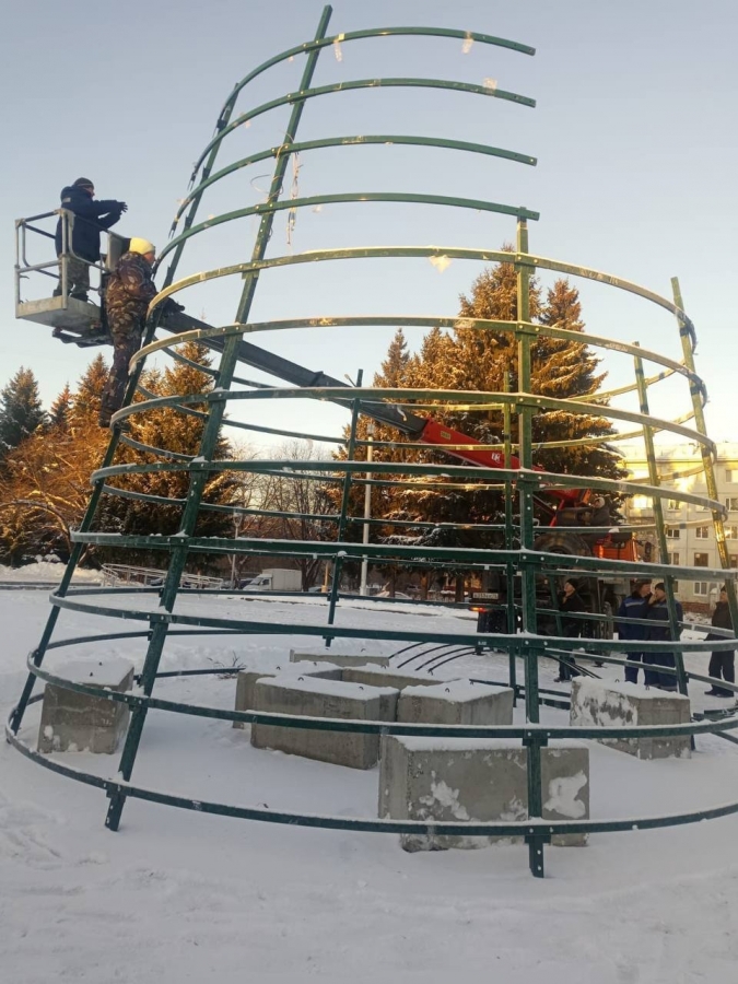 Бригада Муниципального бюджетного эксплуатационного учреждения приступила к монтажу главной городской ели Северска. Об этом рассказали в администрации города.