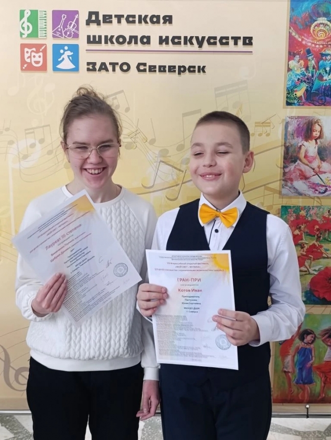 Лауреат 1 степени в номинации «Ансамбль с преподавателем» - Котов Иван, преподаватель Пастухова Ю.С.